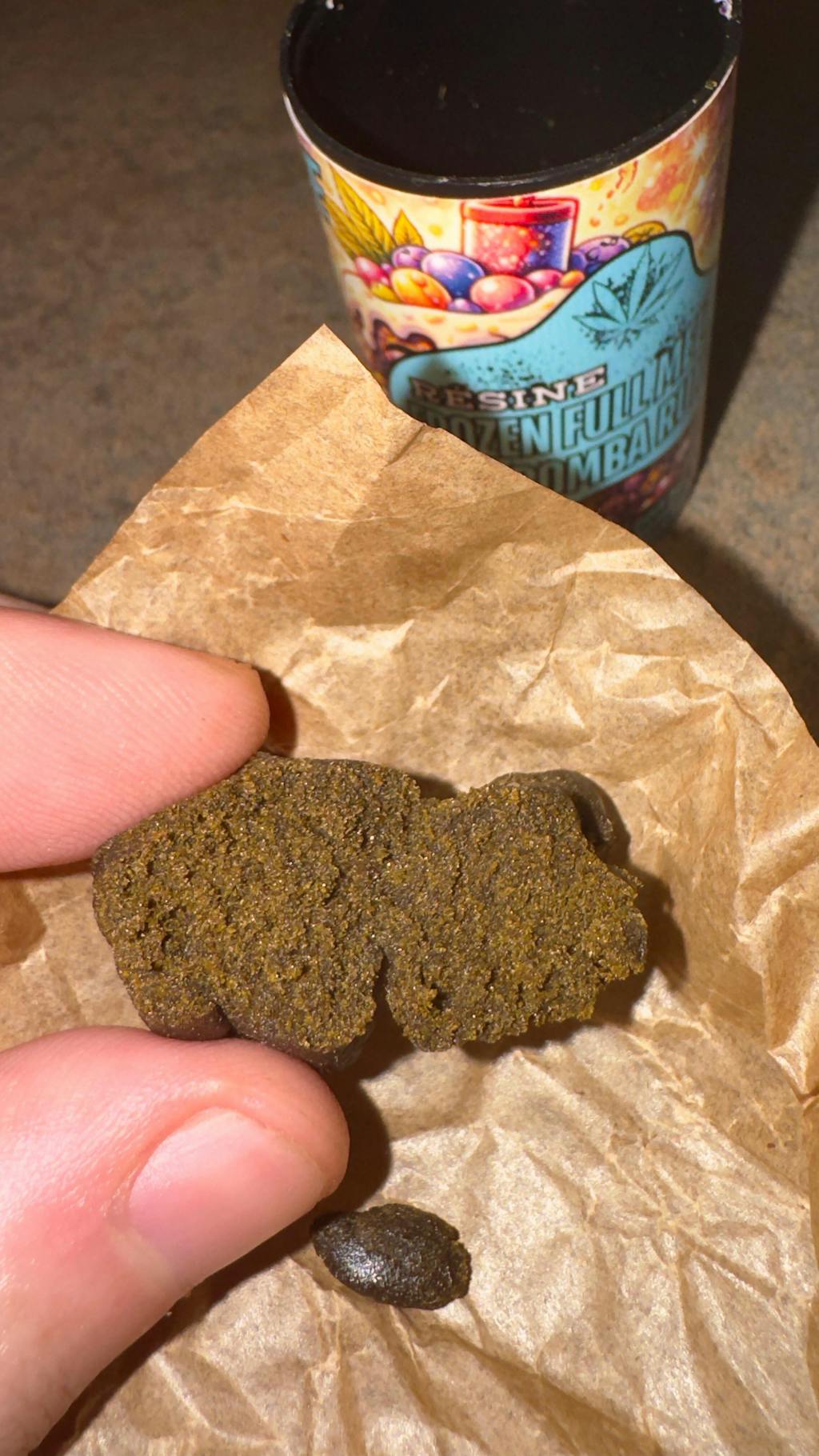 INFORMATIONS: La Bomba Runtz Frozen Premium est élaborée à partir de fleurs fraîchement récoltées puis immédiatement congelées, permettant de préserver l’intégrité des trichomes et l’expression complète des terpènes. Le travail à froid offre une résine grasse, dense et homogène, nettement plus riche qu’un dry sift classique. Ce procédé garantit une matière premium, stable et régulière, fidèle aux standards des frozen haut de gamme.