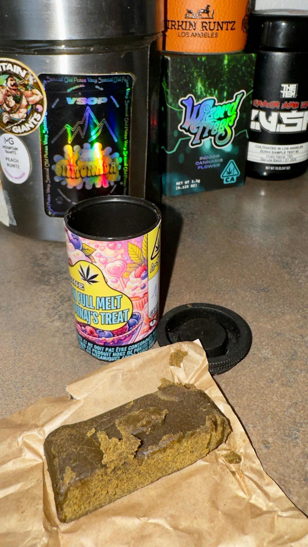 AMATEUR DE SENSATIONS FORTE ? Découvrez notre MINAJ’S TREAT FROZEN PREMIUM Δ-9 THC (THCa), une résine premium travaillée à froid issue d’une génétique ultra gourmande et moderne. Ce frozen premium associe la richesse pâtissière de la Minaje Cake à la douceur fruitée et sucrée des lignées Runtz, pour une expérience dense, crémeuse et intensément aromatique. Pensé pour les amateurs de profils dessert candy haut de gamme, à la fois puissants et élégants.